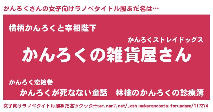 | 男性向けラノベタイトル風あだ名 | 『やはりかんろくの青春ラブコメはまちがっている 』 |
