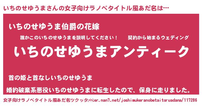 | 男性向けラノベタイトル風あだ名 | 『魔法科高校のいちのせゆうま』 |