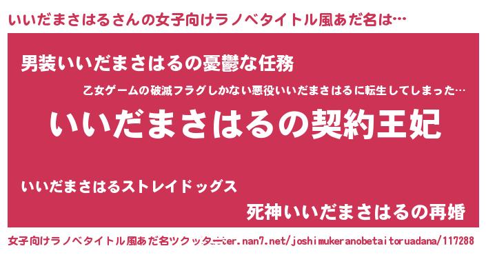 | 男性向けラノベタイトル風あだ名 | 『誰もが恐れるあのいいだまさはるが、ぼくの専属メイドになるようです。』 |