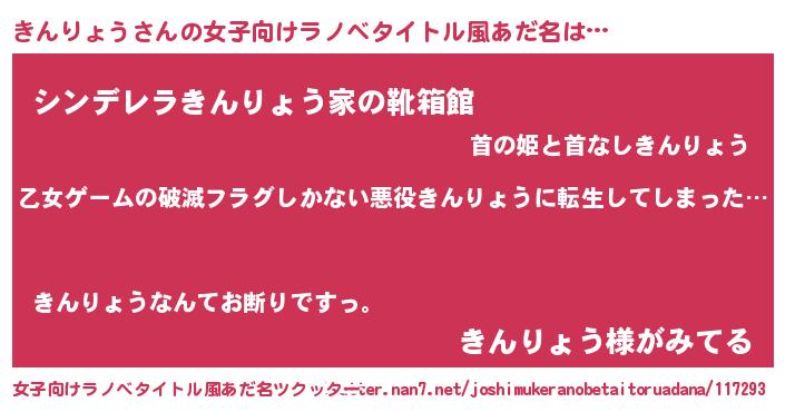 | 男性向けラノベタイトル風あだ名 | 『魔弾の王ときんりょう』 |