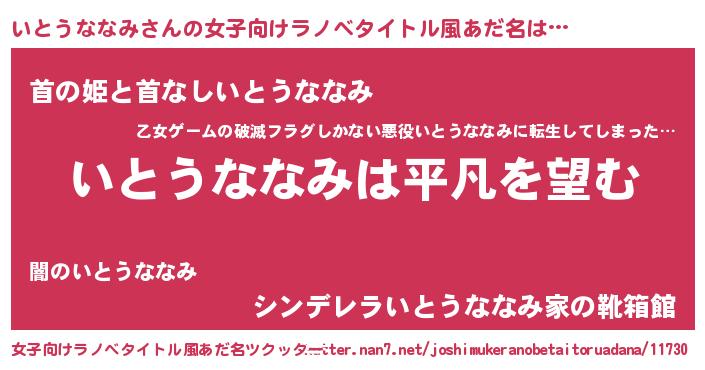| 男性向けラノベタイトル風あだ名 | 『ダンジョンにいとうななみを求めるのは間違っているだろうか』 |