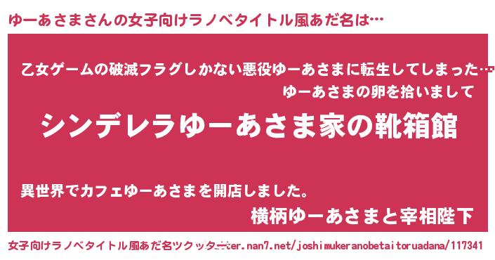 | ヘコむあだ名 | 『ゆーを』『ゆーあさま(笑)』 |