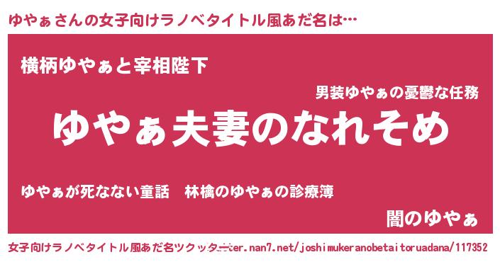 | 男性向けラノベタイトル風あだ名 | 『おまえをオタクにしてやるから、俺をゆやぁにしてくれ! 』 |