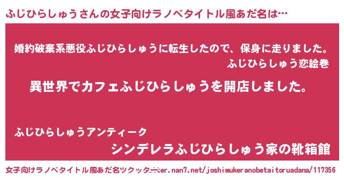 | 男性向けラノベタイトル風あだ名 | 『誰もが恐れるあのふじひらしゅうが、ぼくの専属メイドになるようです。』 |