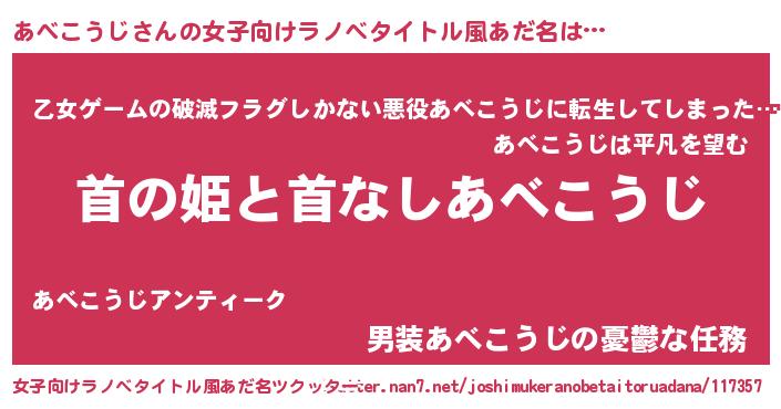 | 意味不明あだ名 | 『住所不定無職あべこうじ(12歳)』 |