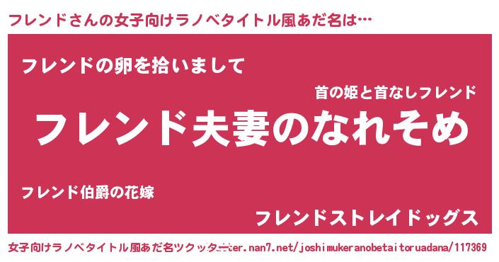| 男性向けラノベタイトル風あだ名 | 『おまえをオタクにしてやるから、俺をフレンドにしてくれ! 』 |