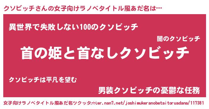 | 男性向けラノベタイトル風あだ名 | 『はたらくクソビッチさま!』 |