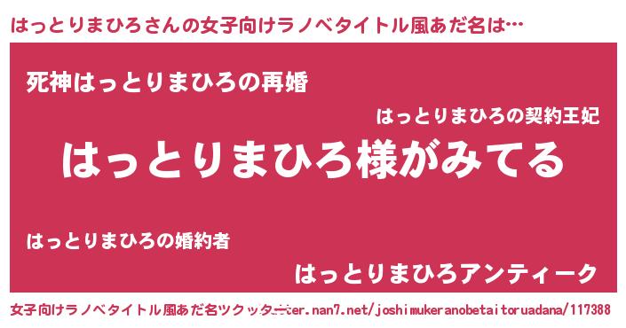 | 男性向けラノベタイトル風あだ名 | 『はっとりまひろの嫁は女の子じゃないと思った?』 |