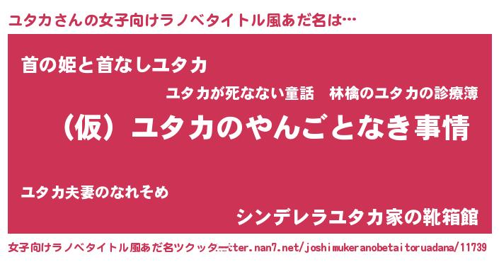 | 男性向けラノベタイトル風あだ名 | 『ユタカの憂鬱』『はたらくユタカさま!』 |
