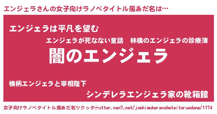 | 男性向けラノベタイトル風あだ名 | 『Re:エンジェラから始める異世界生活』 |