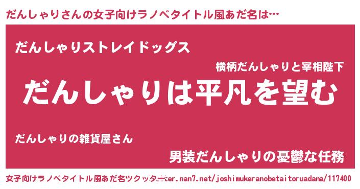 | 胡散臭い通販商品みたいなあだ名 | 『信頼と実績のサプリメント…その名も「だんしゃり」』 |