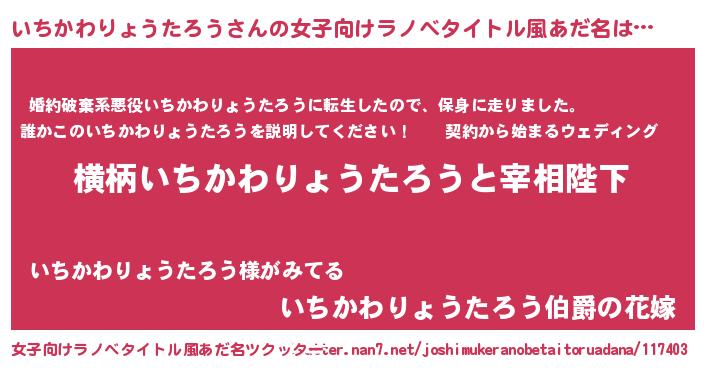 | 胡散臭い通販商品みたいなあだ名 | 『運命の人と巡り会える高級そうな絵画…その名も「いちかわりょうたろう」』 |