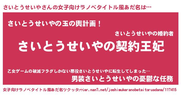 | 意味不明あだ名 | 『永久保存さいとうせいや』 |