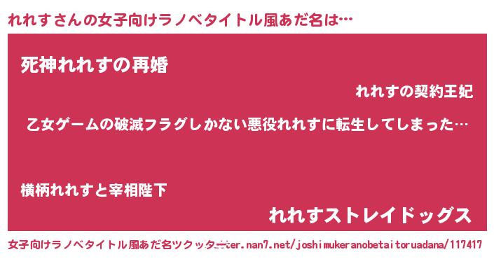 | 男性向けラノベタイトル風あだ名 | 『魔弾の王とれれす』 |