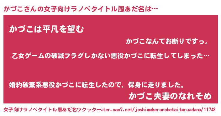| 胡散臭い通販商品みたいなあだ名 | 『世界中を虜にした100年もののヴィンテージワイン…その名も「かづこ」』 |