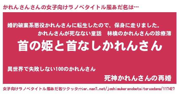 | ヘコむあだ名 | 『かれんさん(笑)』『なまこ酢』 |