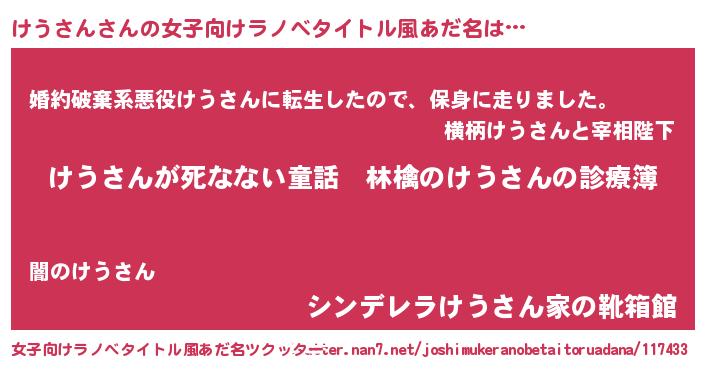 | 意味不明あだ名 | 『住所不定無職けうさん(74歳)』 |