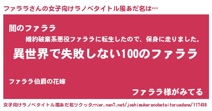 | 男性向けラノベタイトル風あだ名 | 『ファララという概念が存在しない退屈な世界 』 |