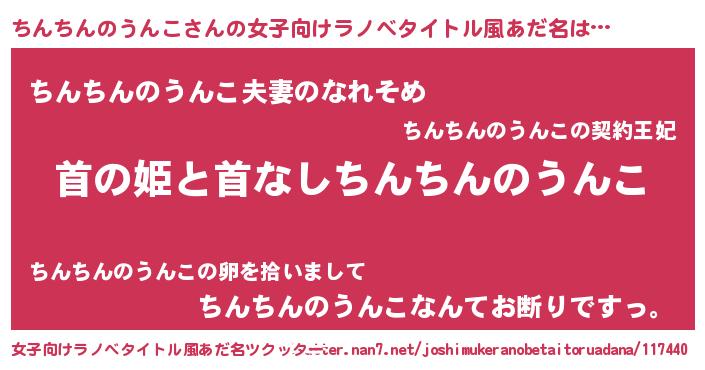 | 男性向けラノベタイトル風あだ名 | 『はたらくちんちんのうんこさま!』 |