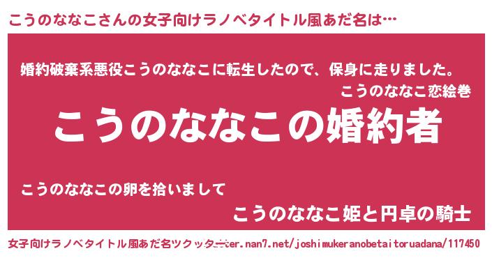 | ファンタジー風あだ名 | 『エターナルコウノナナコー』 |