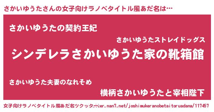 | 胡散臭い通販商品みたいなあだ名 | 『絶対に幸福をもたらす健康食品…その名も「さかいゆうた」』 |