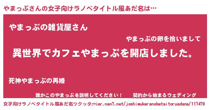 | 男性向けラノベタイトル風あだ名 | 『誰もが恐れるあのやまっぷが、ぼくの専属メイドになるようです。』 |
