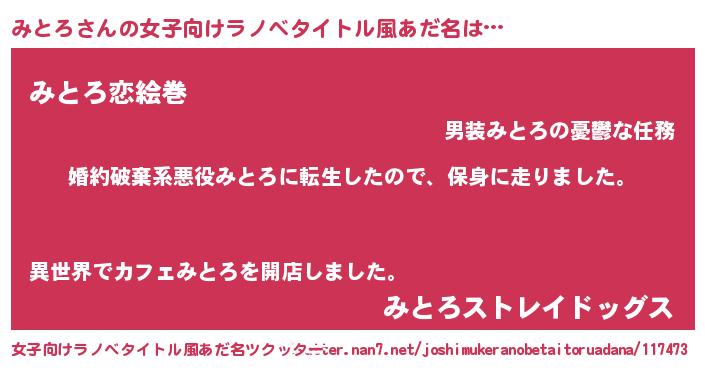 | 男性向けラノベタイトル風あだ名 | 『転生したらみとろだった件』 |
