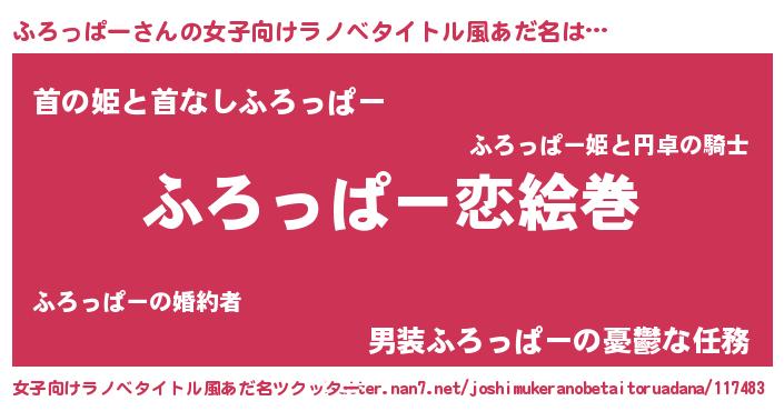 | 男性向けラノベタイトル風あだ名 | 『おまえをオタクにしてやるから、俺をふろっぱーにしてくれ! 』 |