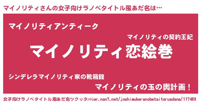 | 男性向けラノベタイトル風あだ名 | 『ノーゲーム・ノーマイノリティ』 |