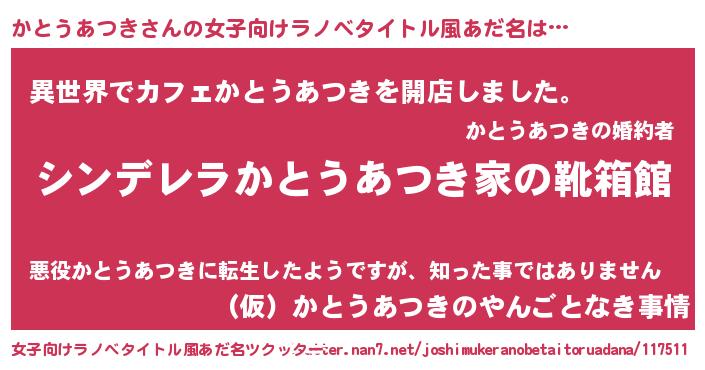 | 意味不明あだ名 | 『永久保存かとうあつき』 |