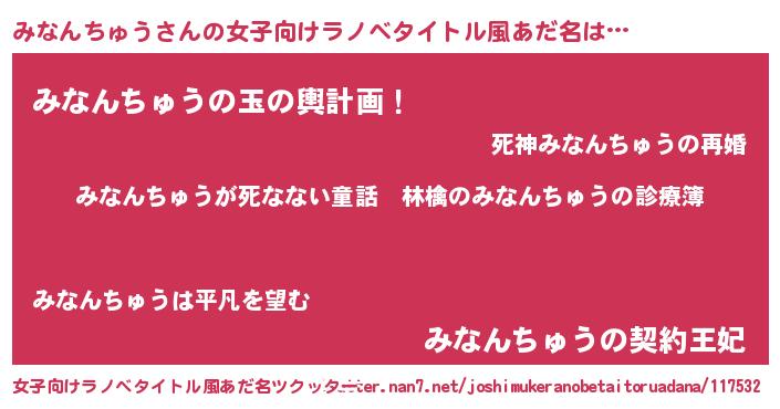 | 意味不明あだ名 | 『住所不定無職みなんちゅう(62歳)』 |