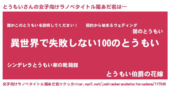 | 胡散臭い通販商品みたいなあだ名 | 『絶対に幸福をもたらす水素水…その名も「とうもい」』 |
