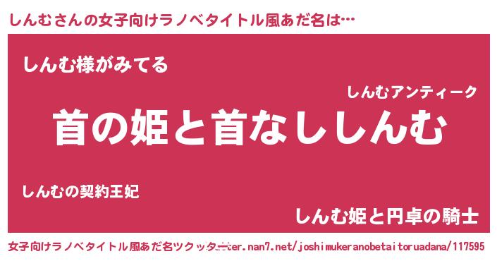 | 胡散臭い通販商品みたいなあだ名 | 『信頼と実績のサプリメント…その名も「しんむ」』 |