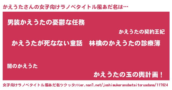 | ヘコむあだ名 | 『かえうた(小並感)』『かえもー』 |
