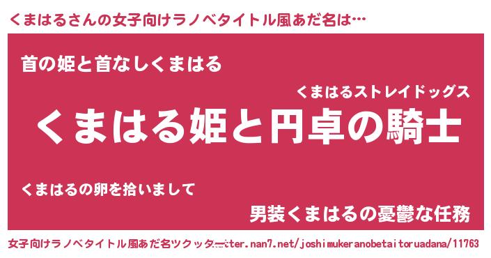 | 男性向けラノベタイトル風あだ名 | 『クマハルアートオンライン』 |