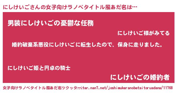 | 男性向けラノベタイトル風あだ名 | 『転生したらにしけいごだった件』 |