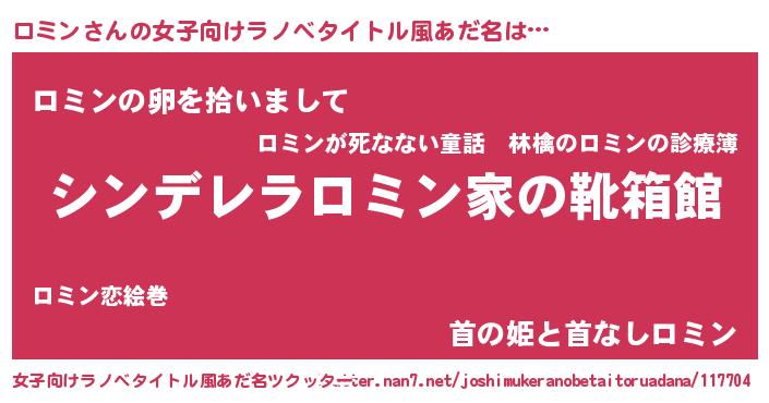| 男性向けラノベタイトル風あだ名 | 『緋弾のロミン』『はたらくロミンさま!』 |