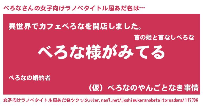 | ヘコむあだ名 | 『べろぷりん』『べろな(笑)』 |