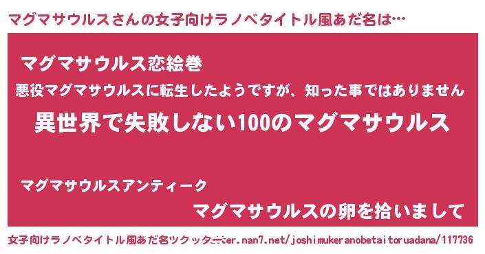 | 男性向けラノベタイトル風あだ名 | 『マグマサウルスという概念が存在しない退屈な世界 』 |