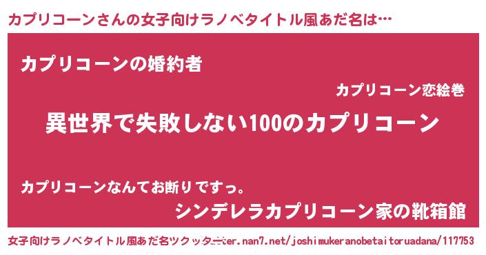 | 男性向けラノベタイトル風あだ名 | 『カプリコーンという概念が存在しない退屈な世界 』 |