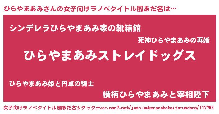 | 欧米人風あだ名 | 『ケンブリッジひらやまあみ』 |