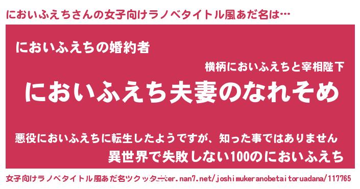| 男性向けラノベタイトル風あだ名 | 『おまえをオタクにしてやるから、俺をにおいふえちにしてくれ! 』 |