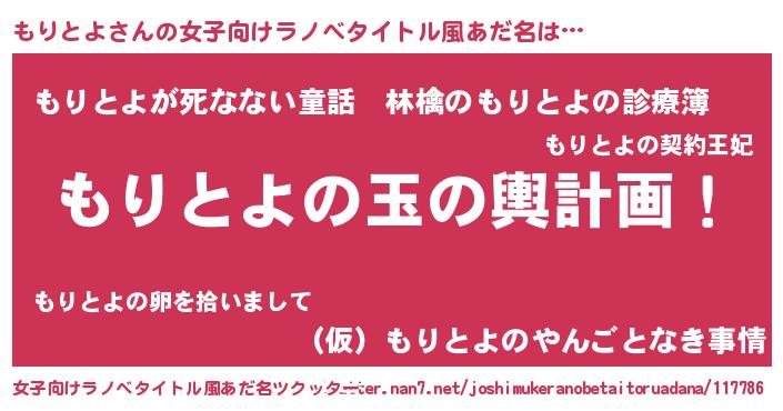 | 男性向けラノベタイトル風あだ名 | 『転生したらもりとよだった件』 |