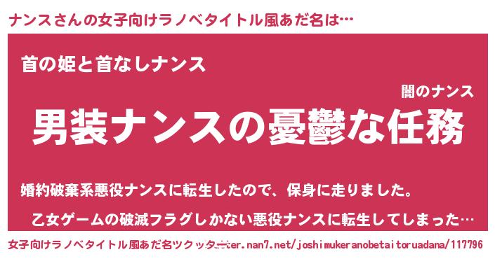 | 胡散臭い通販商品みたいなあだ名 | 『あなたにだけ特別に提供する限定10本のレアな日本酒…その名も「ナンス」』 |