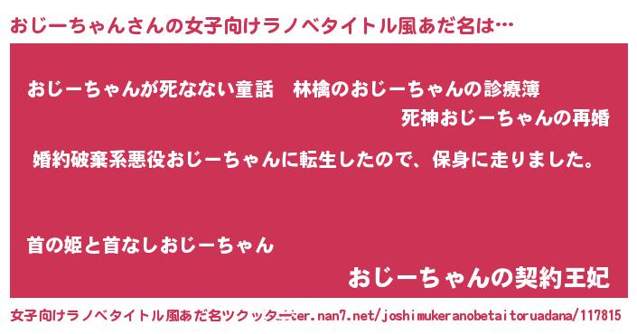 | 胡散臭い通販商品みたいなあだ名 | 『世界中を虜にした世界で10本だけ現存している希少なブランデー…その名も「おじーちゃん」』 |
