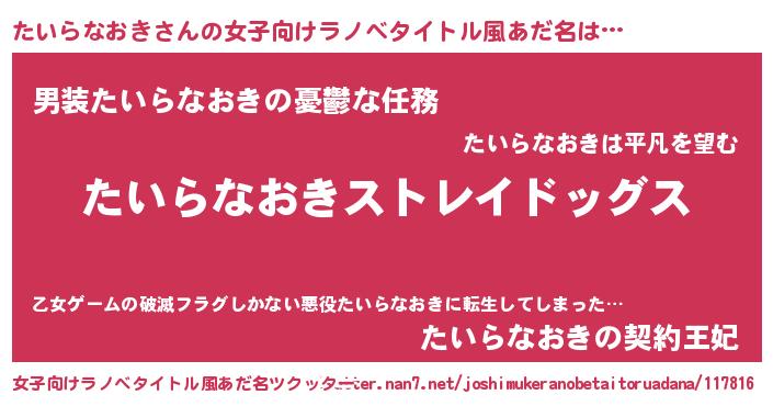 | 男性向けラノベタイトル風あだ名 | 『Re:たいらなおきから始める異世界生活』 |