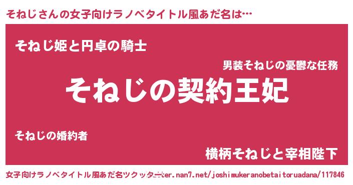 | 男性向けラノベタイトル風あだ名 | 『誰もが恐れるあのそねじが、ぼくの専属メイドになるようです。』 |