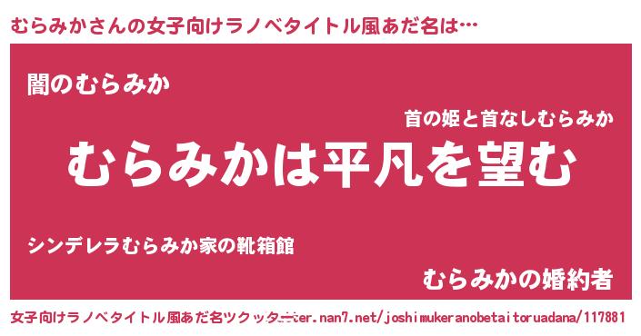 | 男性向けラノベタイトル風あだ名 | 『ダンジョンにむらみかを求めるのは間違っているだろうか』 |