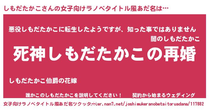 | 肩書あだ名 | 『しもだたかこ教授』『しもだたかこ教官』 |