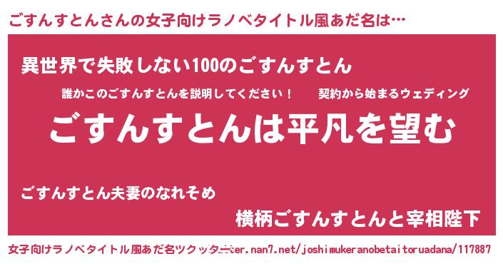 | 男性向けラノベタイトル風あだ名 | 『ダンジョンにごすんすとんを求めるのは間違っているだろうか』 |